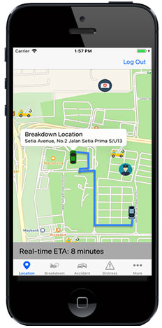 Our breakdown assist apps will allow user to press a button on the apps (user to select whether an accident or breakdown) and the location of the driver will be sent to their respective car insurance provider/third party provider.